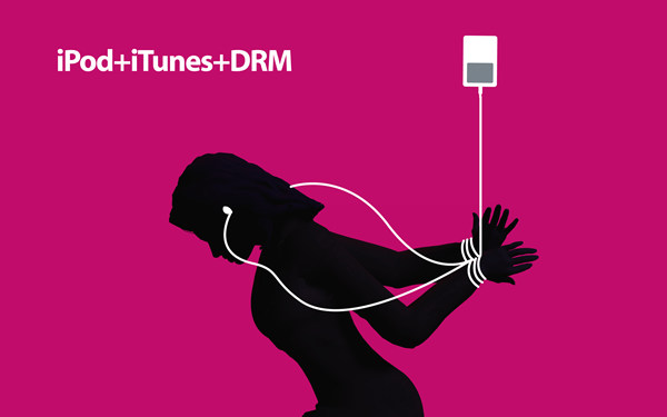 在 2006 年,著名的免费软件基金会发起了“反 DRM 运动”,将这项技术称之为有缺陷的设计,其中,苹果的 iPod 成为了被指责的焦点,甚至还有海报进行讽刺。