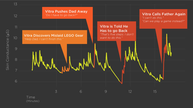 乐高是 mPath 的第一名客户,他们聘用 Hedman 为 LEGO Technic 系列配套的平板 app 提供建议。于是,他们找来数名少年进行测试。当少年们打开 app,第一次看到简介的时候,Hedman 的传感器所记录的数据开始突然升高,不过,这属于正常情况,因为是遇到新鲜的事物,此时需要处理的信息很多。然而,继续测试下去之后,Hedman 就发现问题所在,app 里面的动画太多了,虽然都是一些非常细碎的地方,然而显然儿童们在翻页的时候,感受到更大的压力,结果他们不愿意去使用它。