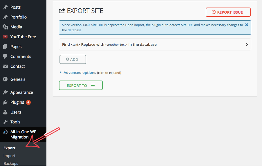 5、找到“All-in-One WP Migration”菜单(在左侧栏中的“Tool”下),然后选择“Export”。